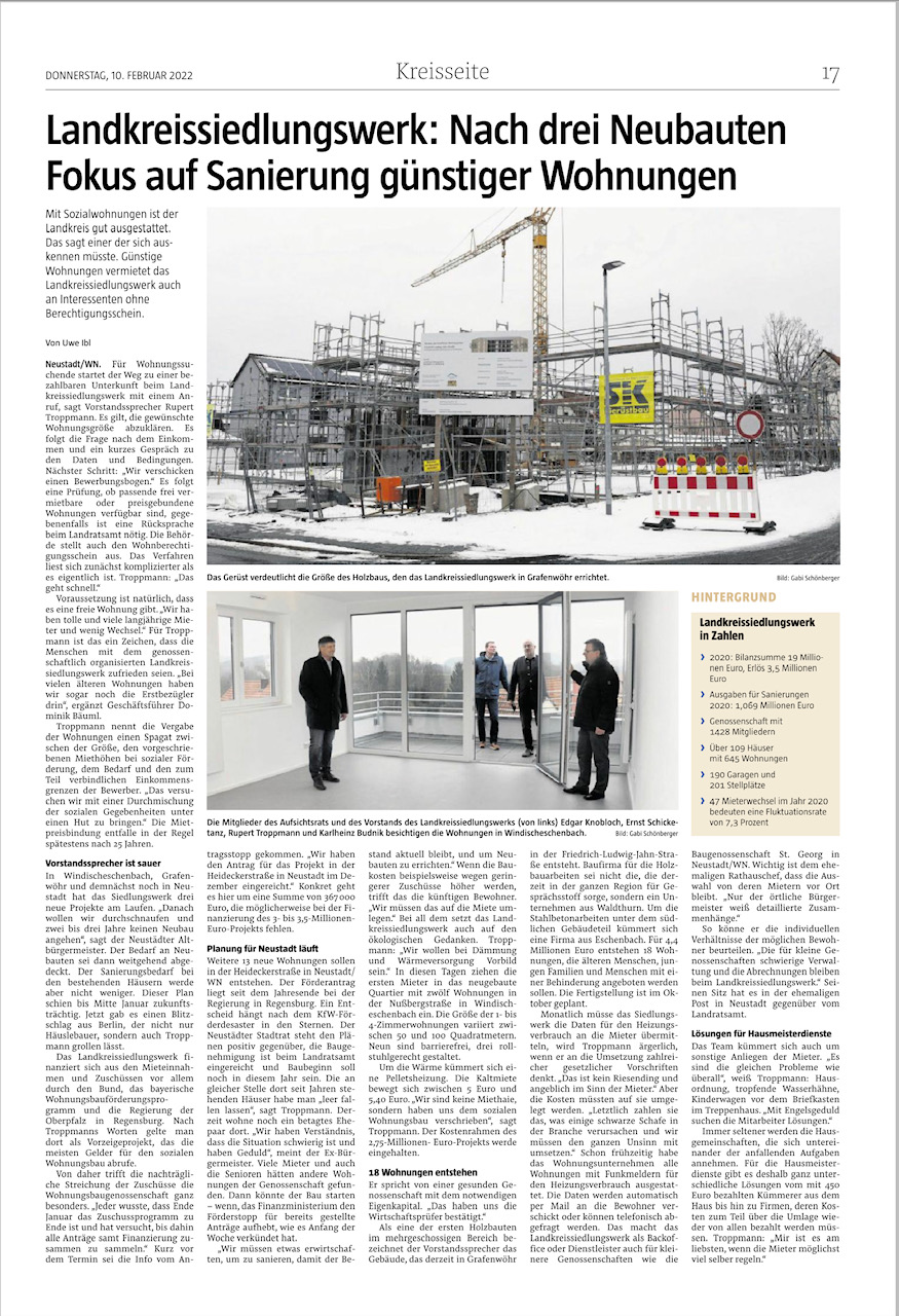 Nachdem bereits der erste Neubau in Windischeschenbach mängelfrei an das Landkreissiedlungswerk Neustadt/WN übergeben wurden, können wir als zuverlässiger Partner das nächste gemeinsame Objekt angreifen.