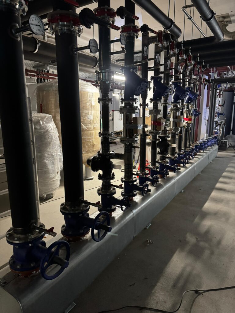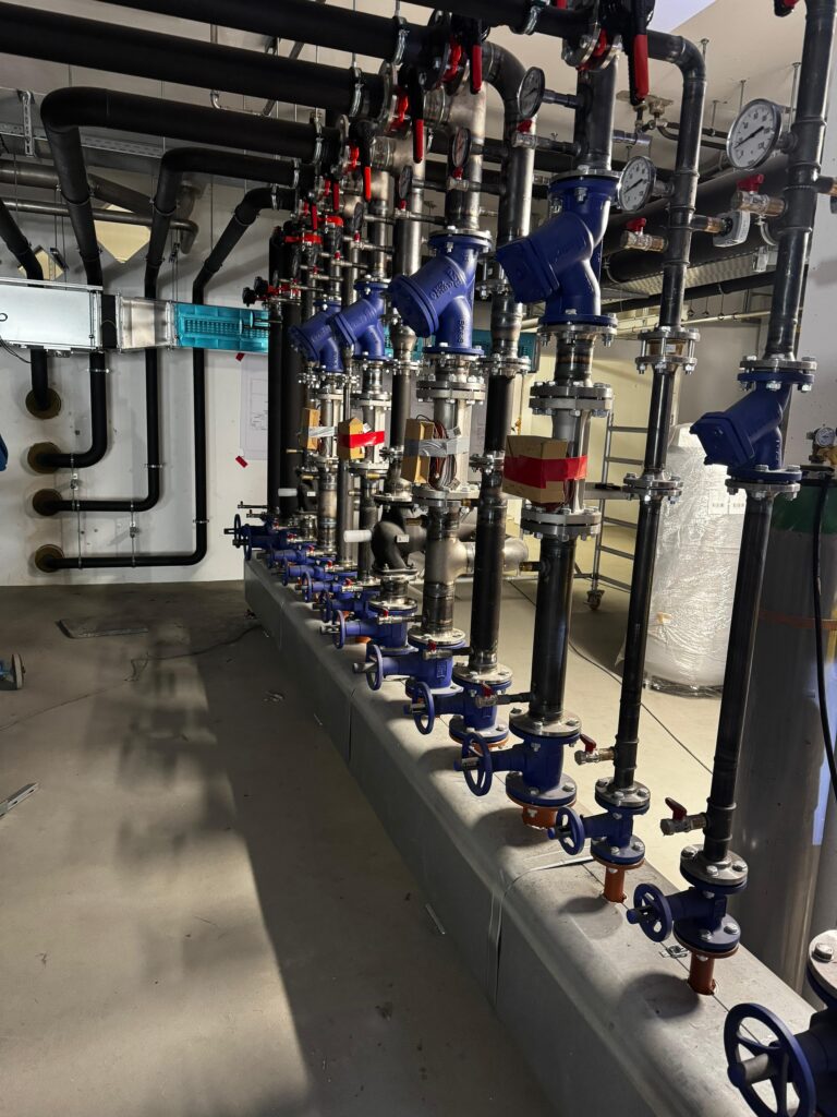 Für dieses Bauvorhaben haben wir den Auftrag für das Gewerk Heizung erhalten. Derzeit führen wir den Aufbau der Heizungsverteiler durch – dabei ist präzise Maßarbeit gefragt.