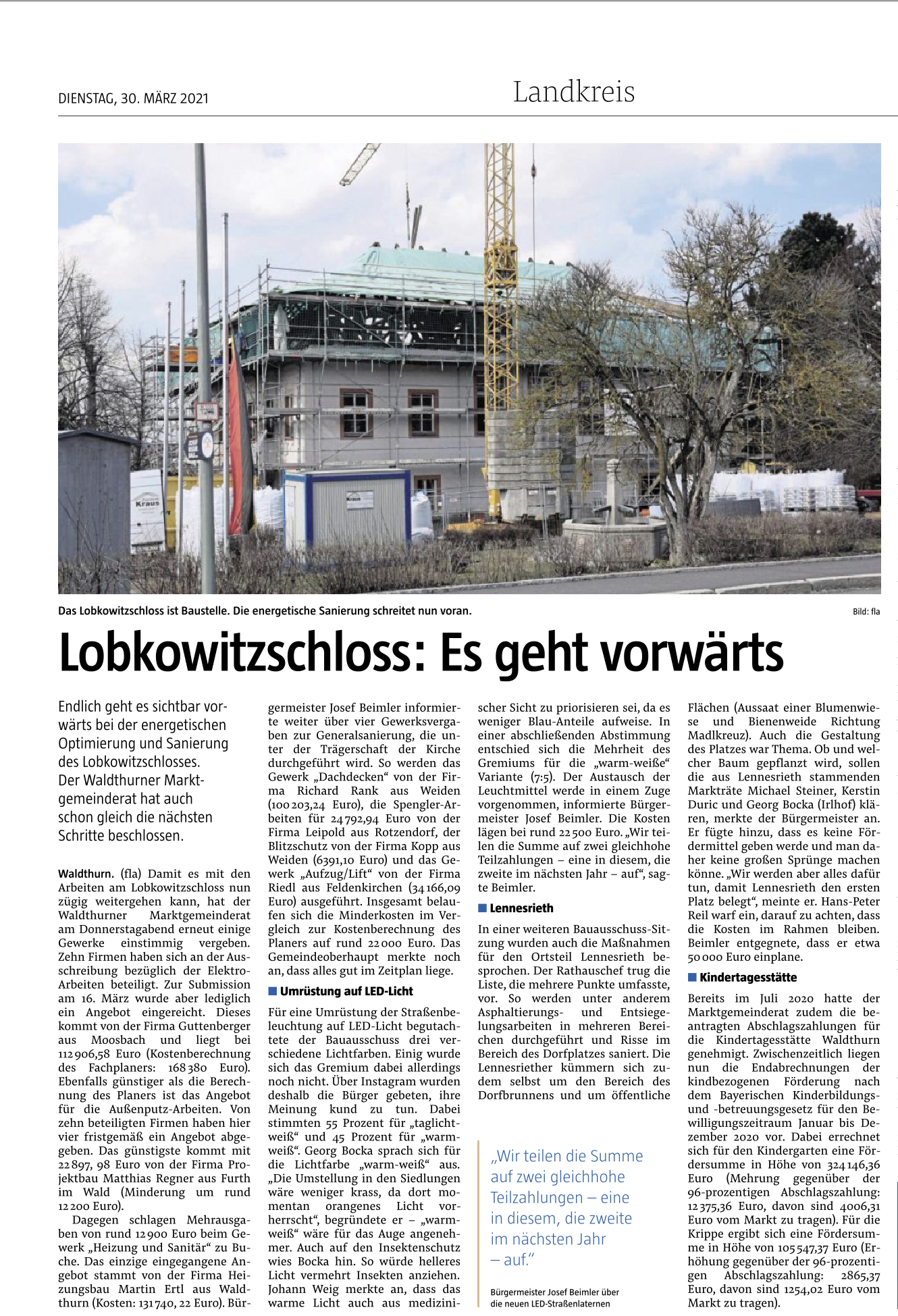 Das Schloss in Waldthurn wird durch die neu verlegte Fernwärmeleitung vom Schwesternheim versorgt. Dabei weiden die einzelnen Räume über Heizkörper beheizt.