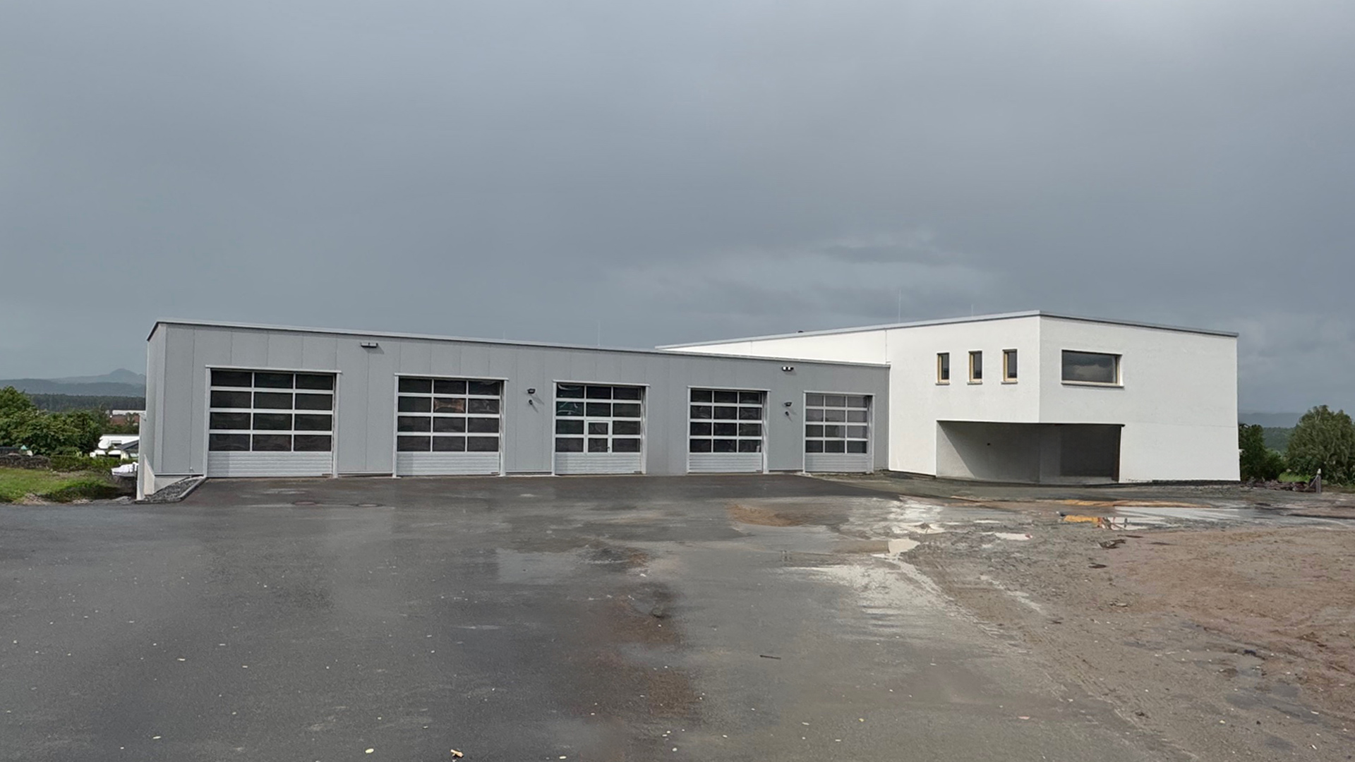 Tagespflege, hauptamtliche Rettungswache und ehrenamtliche Rettungswache sowie einer zweigeteilten Fahrzeughalle mit jeweils 5 Stellplätzen.